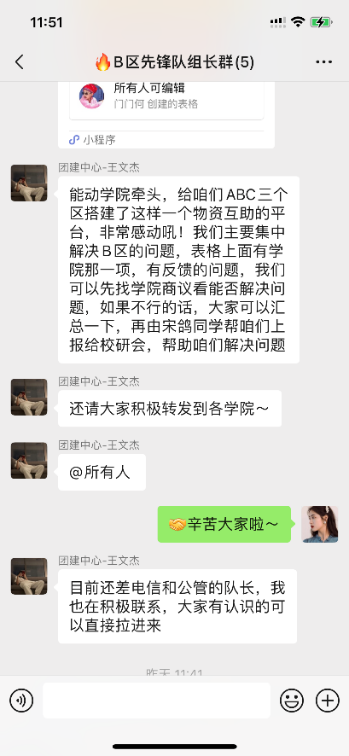 澎湃先锋队搭建防疫平台,以在线互助表格为抓手,建立了快递收发情况;创新港、兴庆生活物资互助;速递物资统计等表格,与各院进行合作,共同维护;同时开设心晴树洞专栏,把同学们所急所忧所思所盼问题一个一个解决,努力把疫情防控的刚性与服务同学的柔性统一起来。