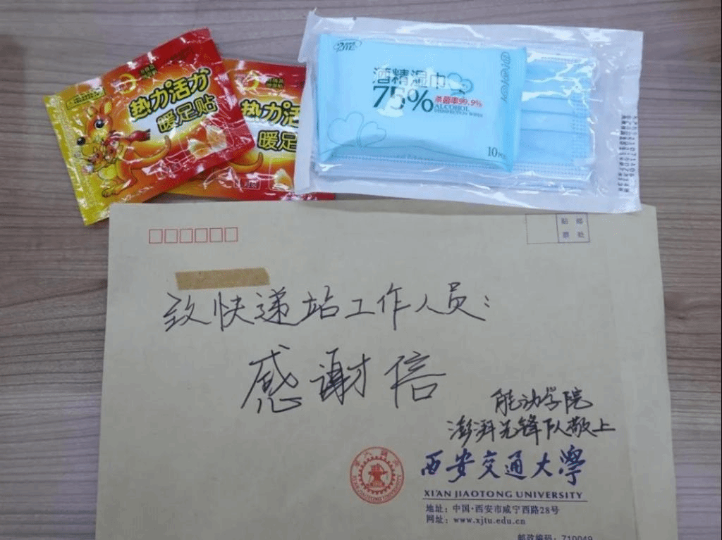 公众号“交大能动研究生”的“心情树洞”栏目,开设“‘疫’不容辞,共克时艰”专栏,邀请同学们参与投稿,“最近我们的‘心情树洞’栏目会有一些同学们对疫情的感受,也会有大家对学校工作人员的感谢。”李彤介绍到。为了表达对工作人员的感谢,传达能动学子的心意,能动澎湃先锋队组织队员为在漫天大雪中辛勤工作的工作人员和志愿者们送去暖宝宝,同时也为在快递站日夜坚守的快递人员送去感谢信。“不仅为同学们服务,也为志愿者们服务”,这是澎湃先锋队的初心,也在刺骨寒风中营造了温暖互助,同心战疫的浓厚氛围。