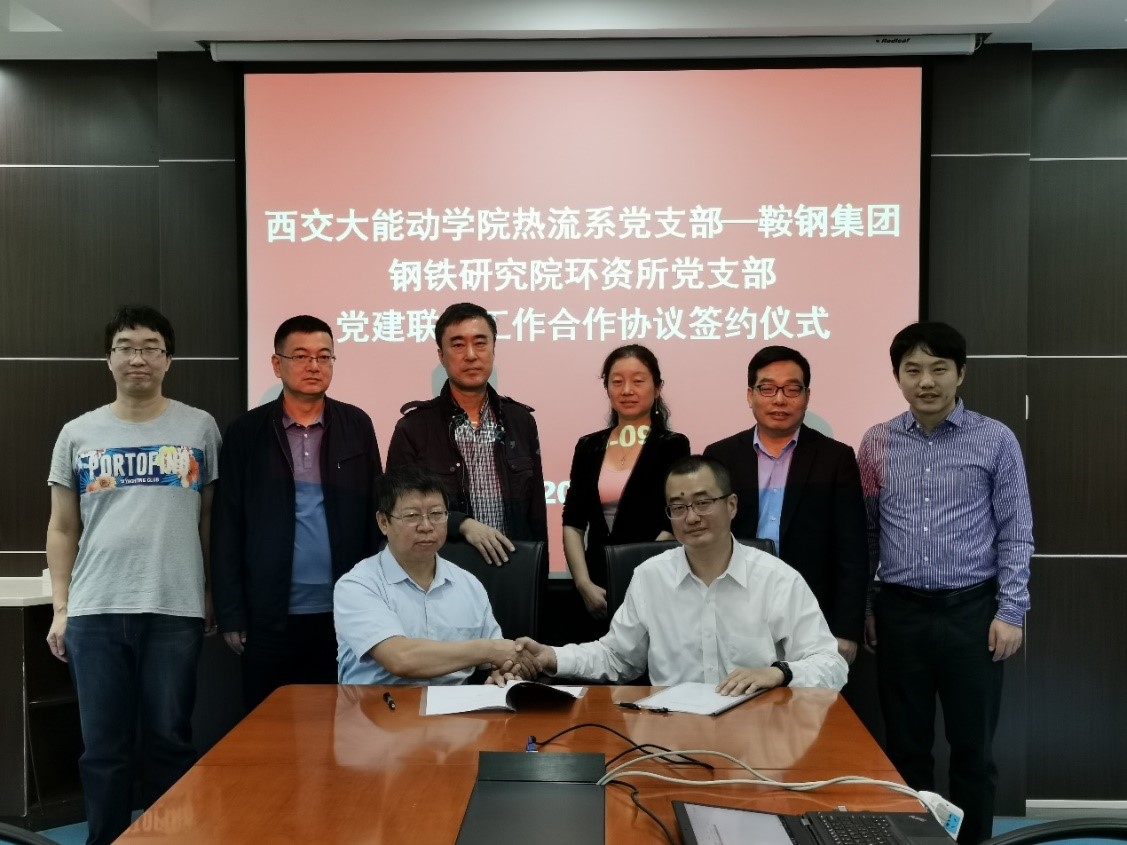 热流系党支部—鞍钢集团钢铁研究院环资所党支部党建联盟工作合作协议,双方表示将充分利用好这个平台,共同推进爱国主义教育和党建学习活动,以党建促进科研,合作攻关钢铁节能减排领域所面临的重大技术难题,并且在本科生实习、研究生社会实践等方面开展全方位的合作,促进双方的共同发展。