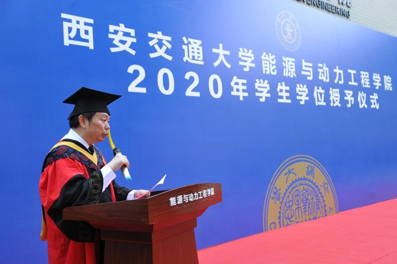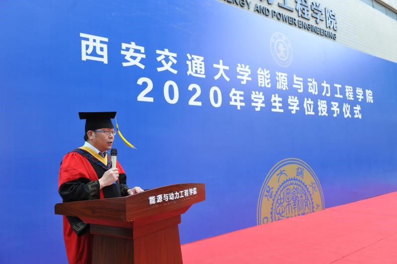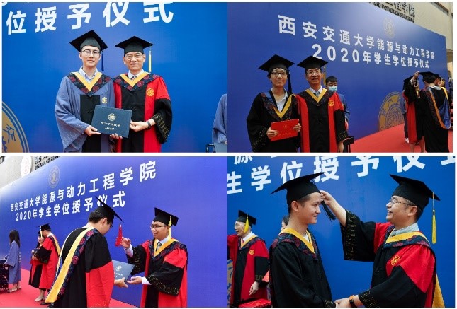 首先,严俊杰院长通报我院2020年毕业生情况。在欢快的乐曲中,陶文铨院士、何雅玲院士、严俊杰教授、厉彦忠教授,黄佐华教授、田文喜教授、延卫教授为毕业生逐一拨穗,颁发学位证书,并给予真诚的祝福与嘱托。毕业生脸上洋溢着幸福的微笑,这一刻定格了他们的收获与喜悦。