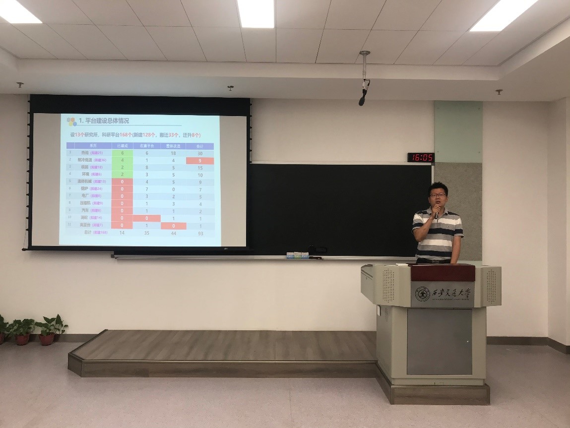 “科创月”活动方案,通报系所创新港平台建设进度。他首先就所有系所实验室建设情况进行一一通报,指出各系所要加快速度,力争更好更快完成平台建设。同时他向与会成员介绍目前研究院公共空间及系所文化建设情况,要求各系所在建设实验室的同时注意注重文化建设,营造更好的科研工作空间环境。