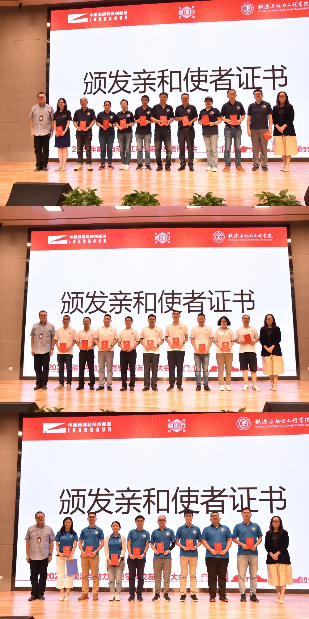 侯予教授向各级、各班校友联络人颁发了亲和使者证书。校友吴亦农、李洪等纷纷上台发表感言,西安交大的学习为他们后续的工作打下了良好的基础,向母校致以感谢;校友们毕业后也一直对西安交大、对北京赛车pk10