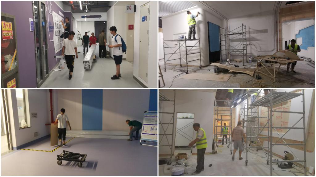 教师、学生争分夺秒,组装、检测、调试设备。