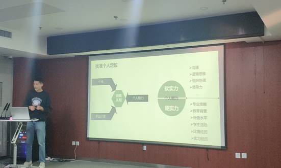 最后进行分享的张鑫师兄,签约于华为消费者管理培训生。张鑫师兄通过个人定位、工作意向、求职经验三个方面提醒大家一定要明确目标,知道自己更适合什么工作,甚至更加明确的知道自己的目标公司,才能用最多的精力处理最重要的求职事项,来提高求职的成功率。