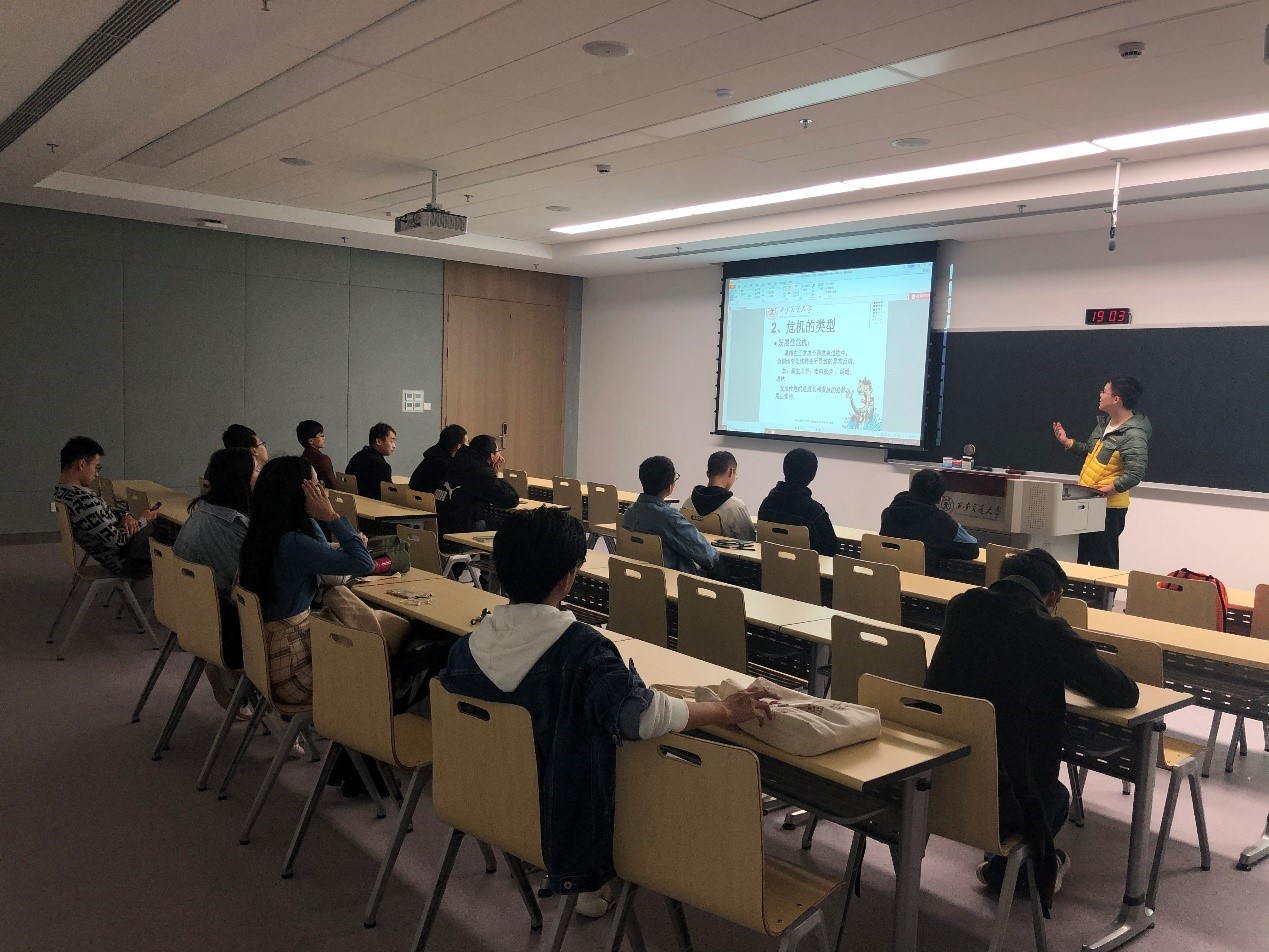 研9037班在创新港1号巨构3061会议室开展了主题为“心理危机预防与处理”的班会活动。班级心理委员林泓翰同学主持了此次活动,全班大部分人按时到场。