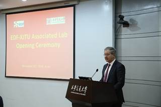 SACRESTE Jacques副总裁表示非常高兴来到西安交通大学,简要介绍了法国电力集团发展历史、国际业务及投资等方面的情况,他说,法国电力集团是世界能源市场上的主力之一,集团公司具有丰富的国际合作经验,与西安交通大学一直保持着密切合作关系,他希望能够以此次联合实验室成立为契机,在核电领域继续开展更加深入的合作交流,实现共赢,同时邀请西安交通大学代表访问法国电力集团。